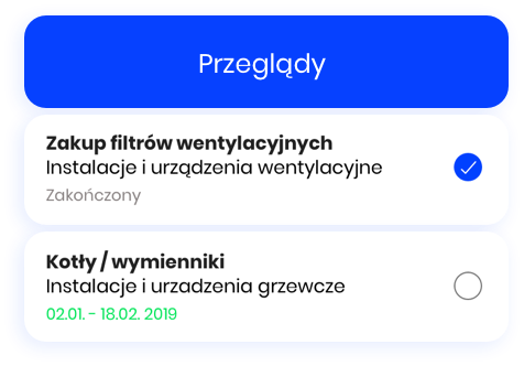 Monitoruj przeglądy, usterki i naprawy w Twoim obiekcie.